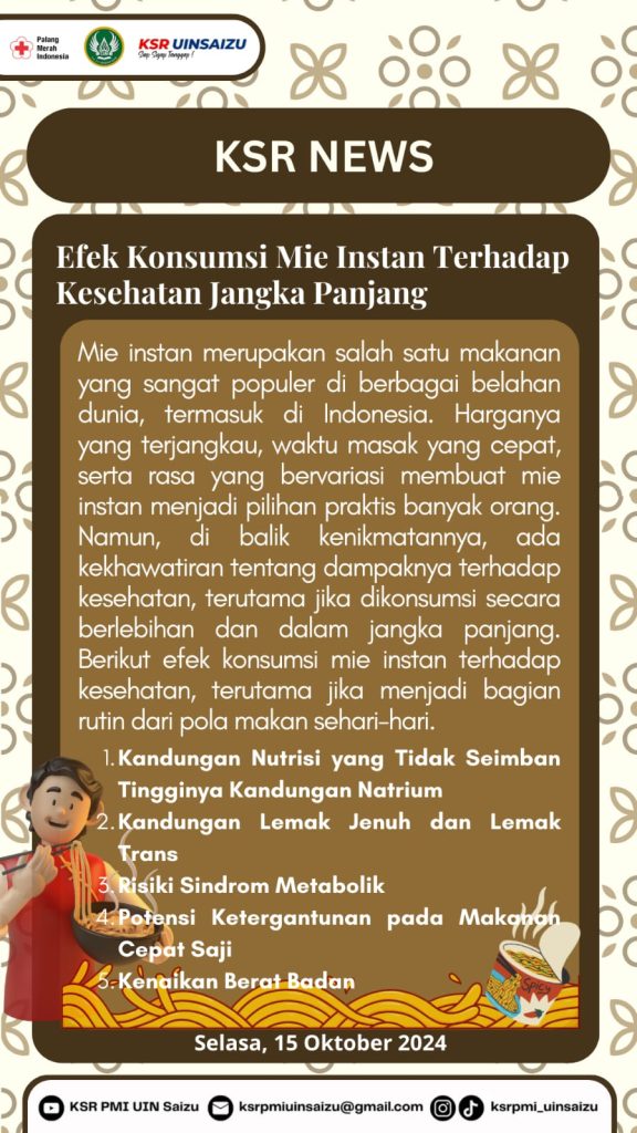 Mie instan memang praktis dan nikmat, tetapi konsumsi yang terlalu sering dan dalam jangka panjang dapat berdampak buruk pada kesehatan. Dari ketidakseimbangan nutrisi, risiko tekanan darah tinggi, hingga potensi masalah pencernaan, berbagai efek negatif dapat timbul jika tidak ada pengendalian. Untuk menjaga kesehatan, sebaiknya konsumsi mie instan dibatasi dan selalu diimbangi dengan makanan lain yang lebih bergizi, seperti sayuran, buah-buahan, dan protein berkualitas.